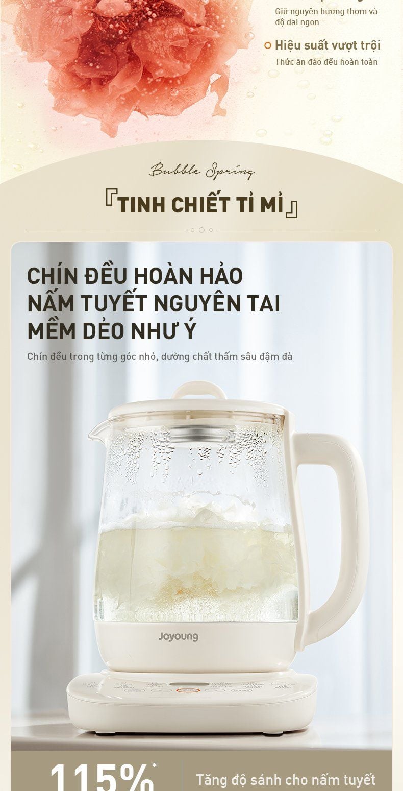- Tinh chiết tỉ mỉ: Chế biến món nấm tuyết nguyên tai mềm dẻo như ý, chín đều, lưu giữ dưỡng chất đậm đà thơm ngon và tăng độ sánh đến 115%*.