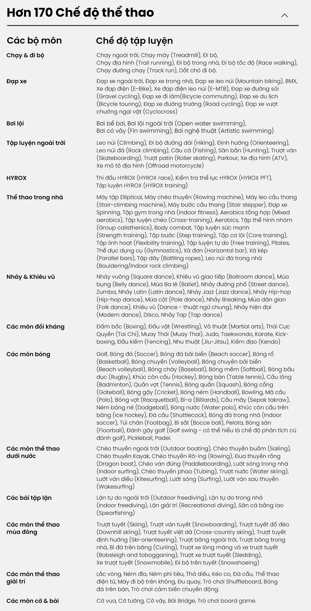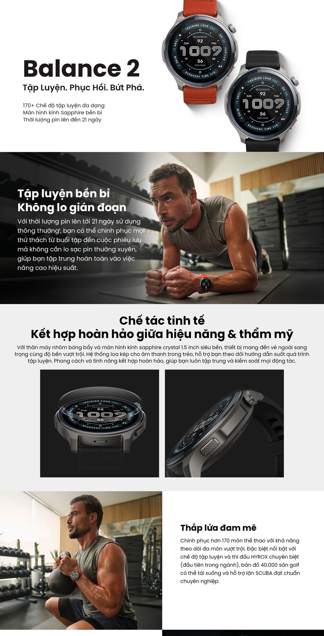 - Đặc biệt nổi bật với chế độ tập luyện và thi đấu HYROX chuyên biệt (đầu tiên trong ngành) và hỗ trợ lặn SCUBA đạt chuẩn chuyên nghiệp.