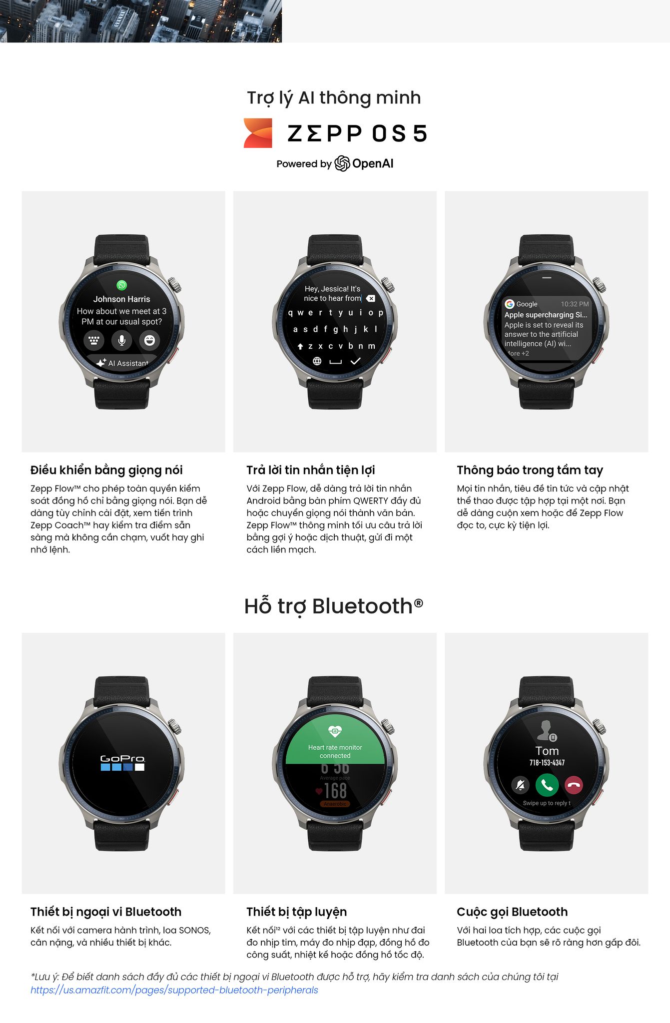 - Trợ lý Zepp Flow™ cho phép bạn kiểm tra chỉ số theo thời gian thực, bắt đầu/tạm dừng hoạt động hoặc truy cập nhanh các tính năng quan trọng – không cần vào menu, không lo bị gián đoạn.