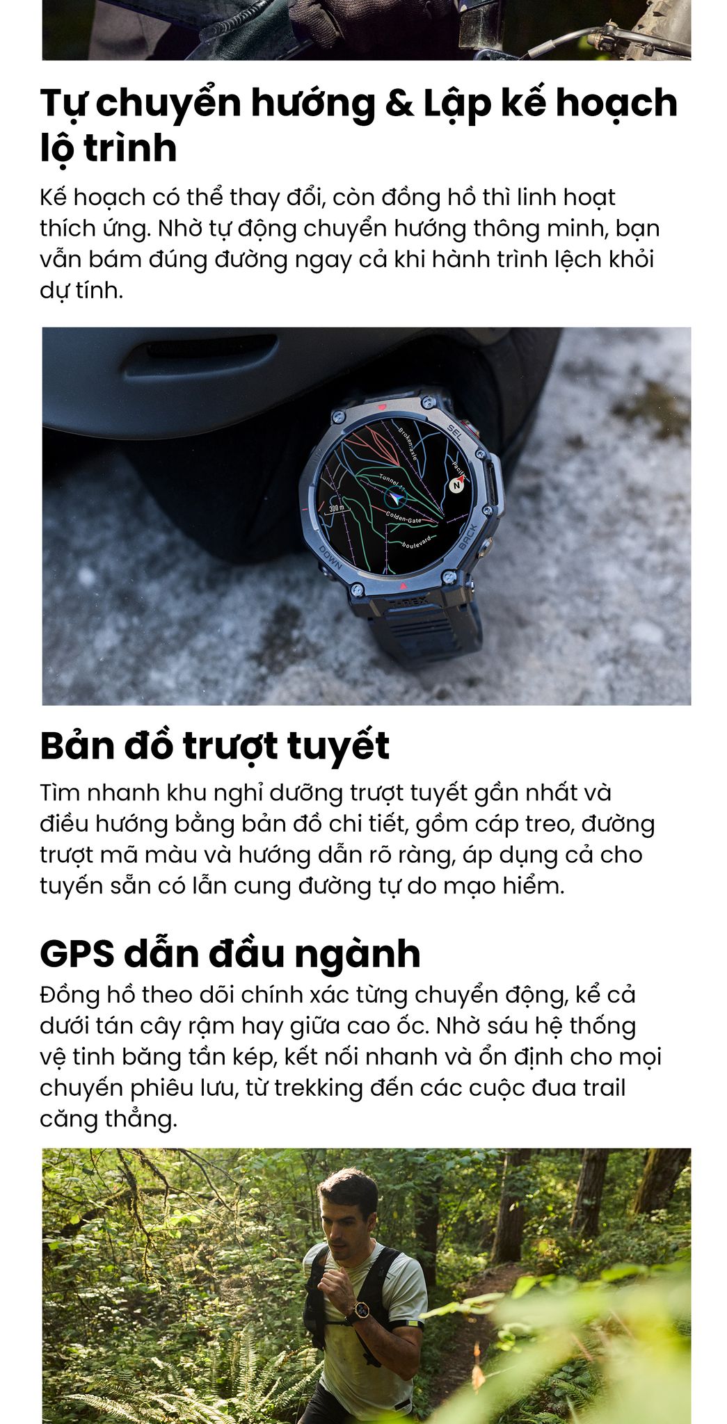 Tự chuyển hướng & Lập kế hoạch lộ trình: Kế hoạch có thể thay đổi, còn đồng hồ thì linh hoạt thích ứng. Nhờ tự động chuyển hướng thông minh, bạn vẫn bám đúng đường ngay cả khi hành trình lệch khỏi dự tính.