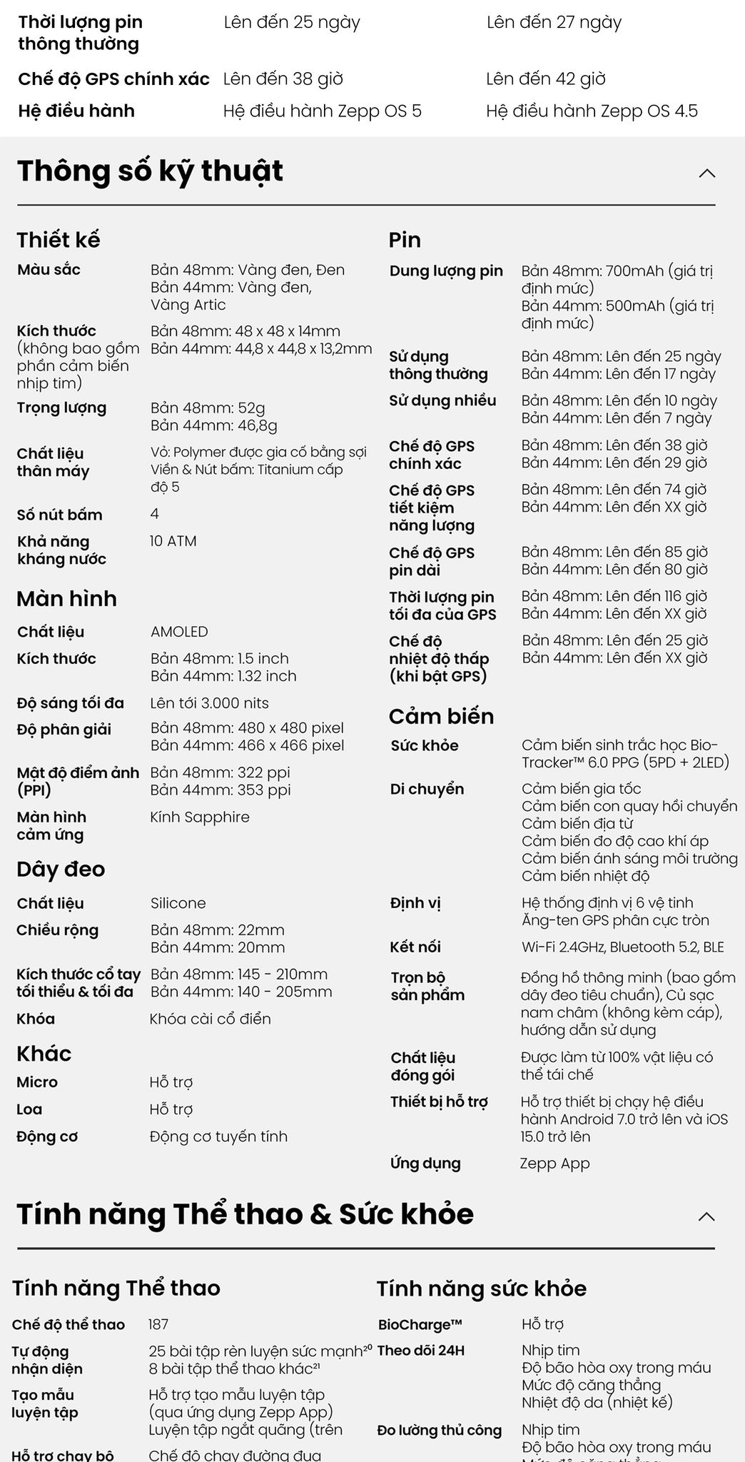 Thời lượng pin lên đến 3 tuần: Thoải mái tận hưởng hành trình dài ngày. Với pin bền vượt trội, T-Rex 3 Pro sẵn sàng cho các chuyến trekking nhiều ngày, tuần lễ thi đấu hay nhiệm vụ vùng sâu mà không bận tâm sạc.