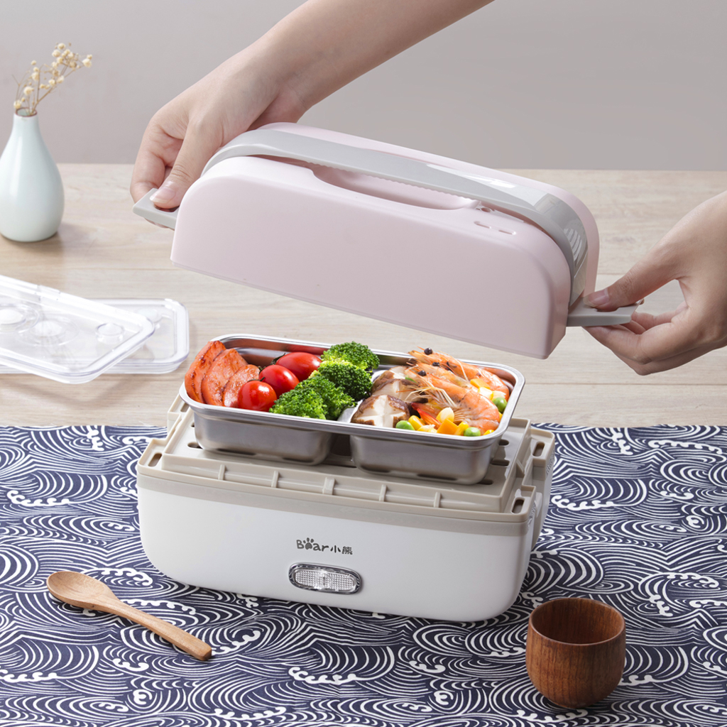 Với hộp cơm điện cầm tay Bear DFH-B10J2, người dùng có thể hâm nóng thức ăn nấu chín từ trước và có ngay bữa ăn nóng sốt chỉ trong 10 phút. Trường hợp người dùng muốn nấu cơm và thức ăn ngay tại văn phòng, chỉ cần cho thực phẩm đã sơ chế cùng vời gạo + nước vào trong thiết bị rồi cấp nguồn và bắt đầu nấu. Bữa ăn nóng sốt dành cho bạn sẽ sẵn sàng trong 45-60 phút.