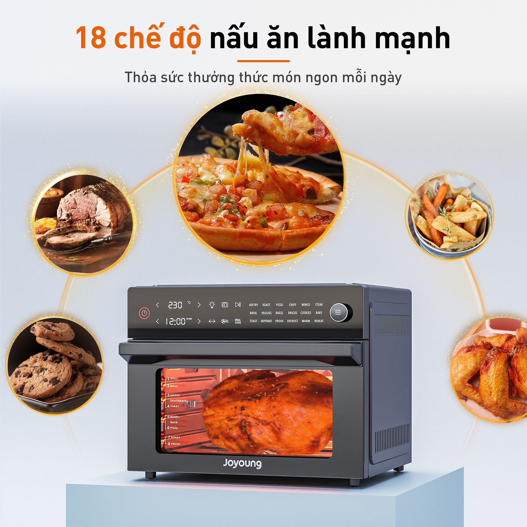 - 18 chế độ nấu ăn lành mạnh: Thỏa sức thưởng thức món ngon mỗi ngày.