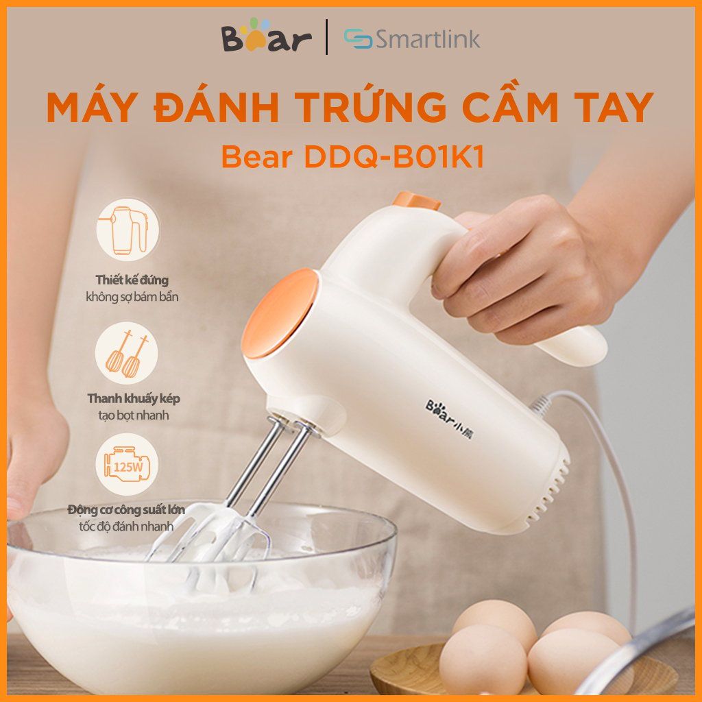 Chiếc máy đánh trứng cầm tay Bear DDQ- B01K1 sở hữu công suất hoạt động 125W, với thiết kế trục xoay kép giúp tăng hiệu quả đánh trứng, giảm thời gian sử dụng. Từ đó tiết kiệm thời gian chuẩn bị bữa ăn cho gia đình bạn ở mức tối đa. Với thiết kế đặc biệt, bạn hoàn toàn làm chủ chiếc máy đánh trứng cầm tay với 5 mức độ lực khác nhau này để vận dụng vào các món ăn khác nhau.