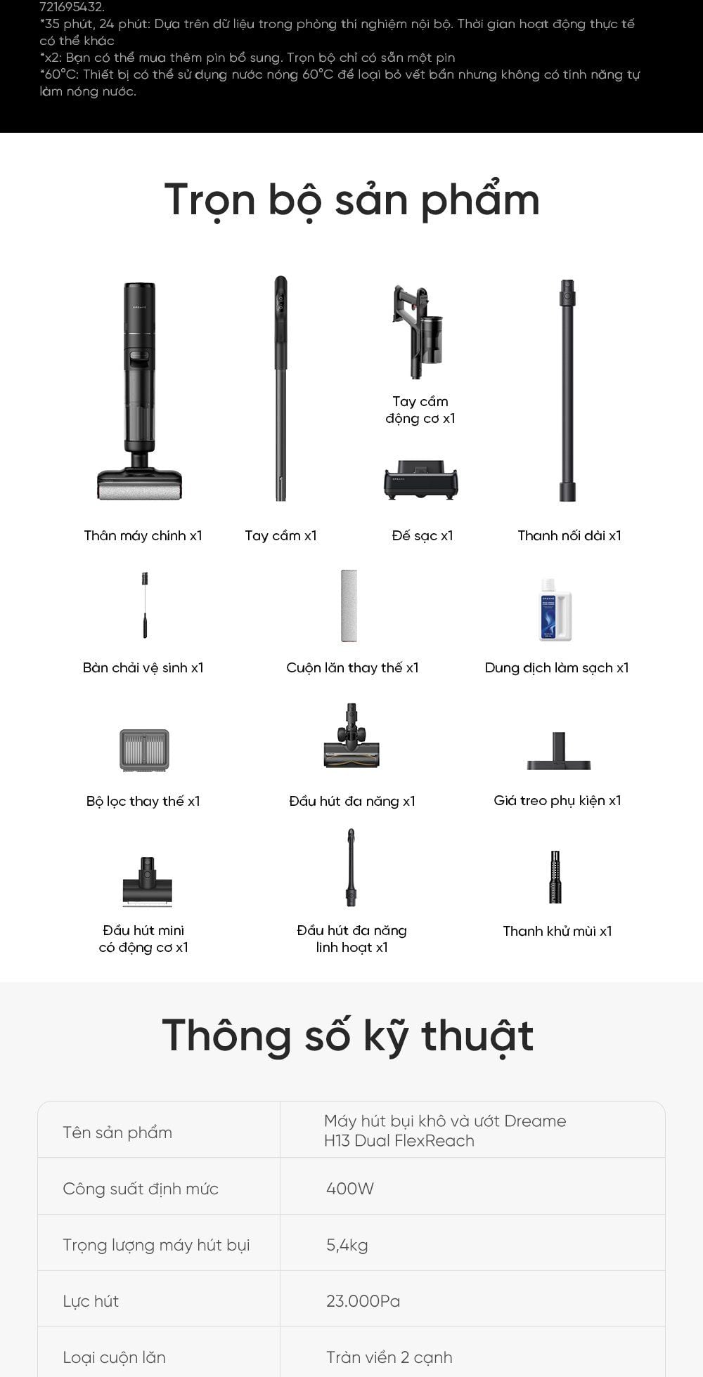 Tên sản phẩm: Máy hút bụi khô và ướt Dreame H13 Dual FlexReach
