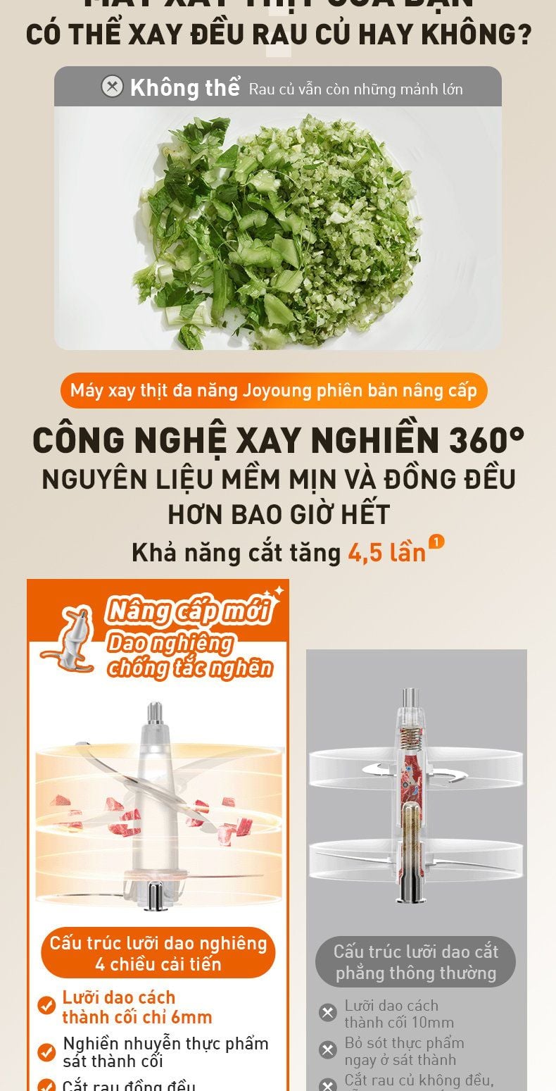 - Công nghệ xay nghiền 360°: Nguyên liệu mềm mịn và đồng đều hơn bao giờ hết, khả năng cắt tăng 4,5 lần¹.