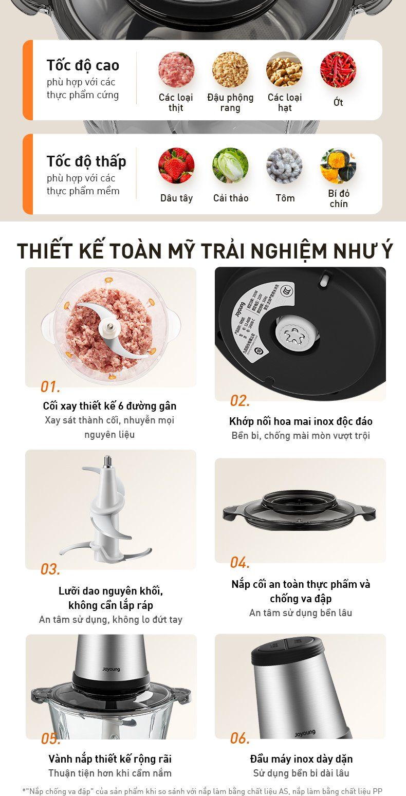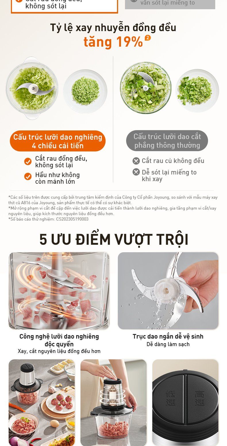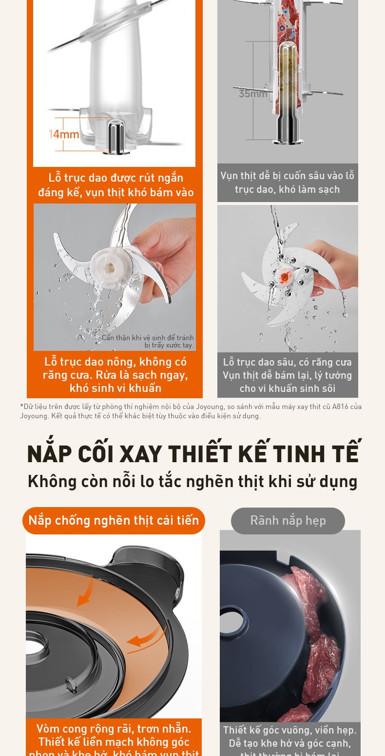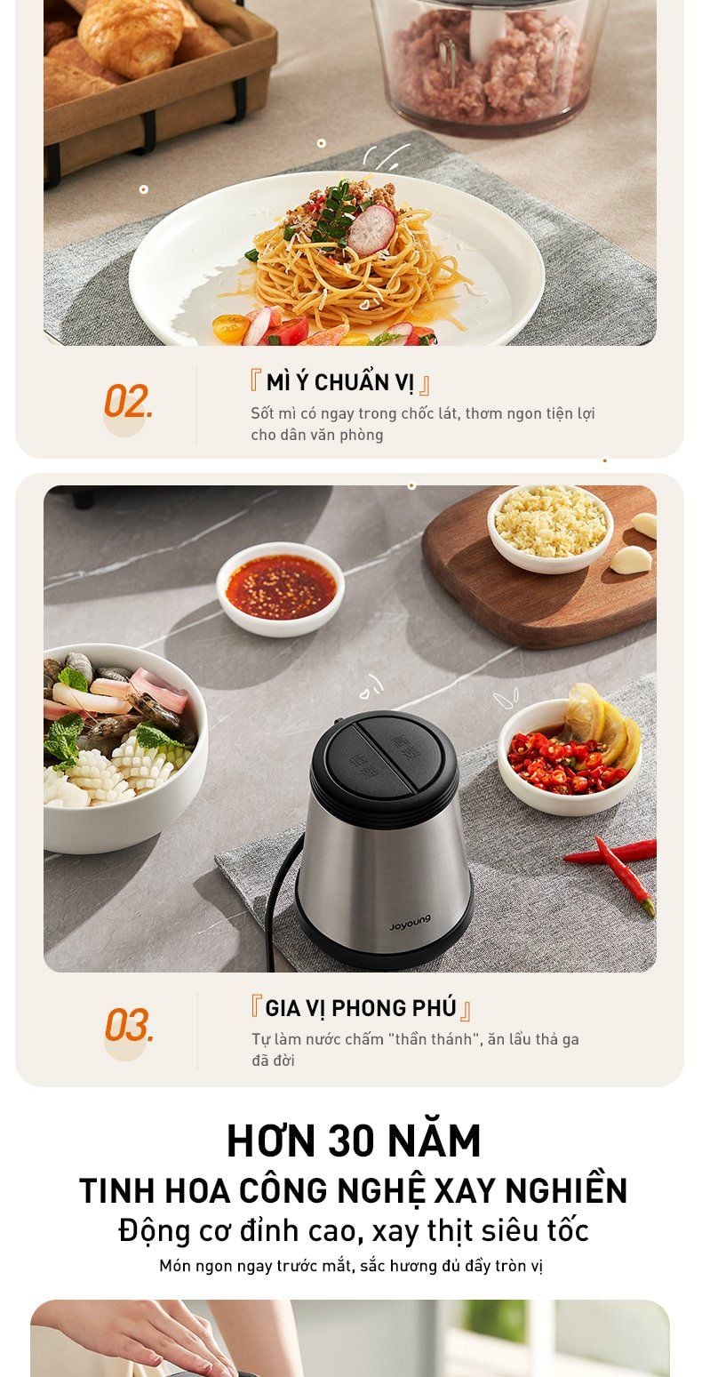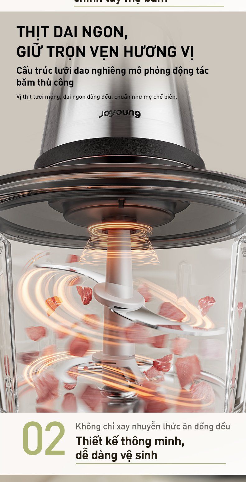- Cấu trúc lưỡi dao nghiêng mô phỏng động tác băm thủ công: Vị thịt tươi mọng, dai ngon đồng đều, chuẩn như mẹ chế biến.