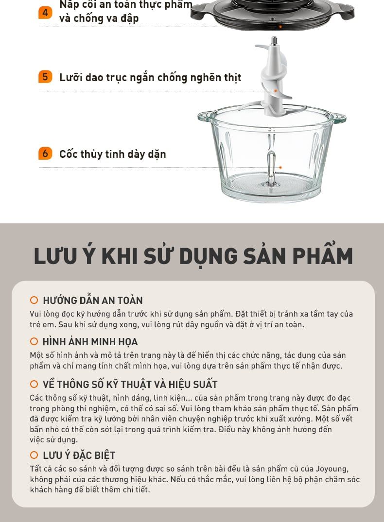 - Xay nhanh chỉ trong 6 giây: Xay nghiền mọi thực phẩm, không lo sót lại miếng lớn.