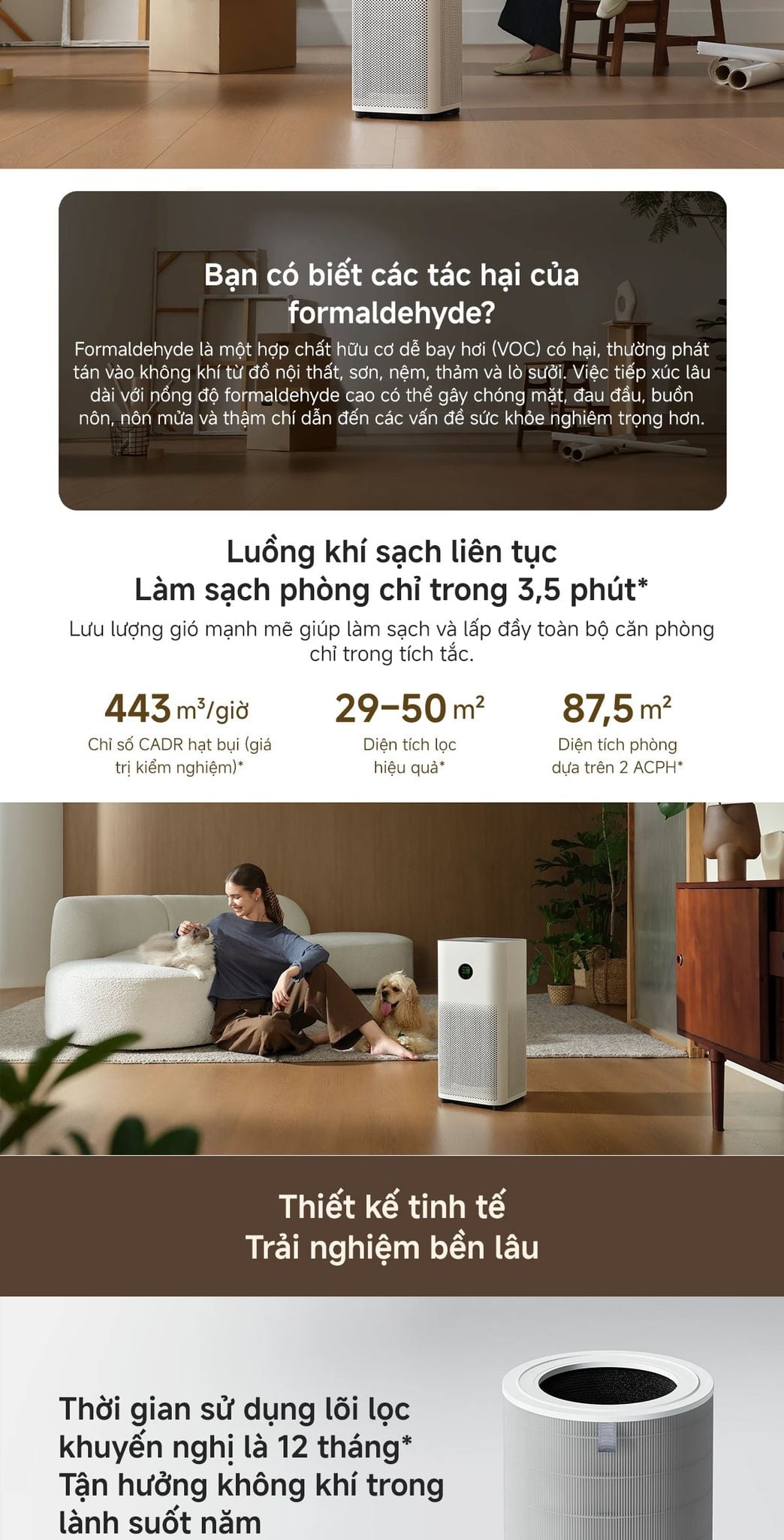 - Hệ thống lọc compostie năm lớp: Giải pháp lọc vượt trội, bảo vệ cả nhà trong từng hơi thở.