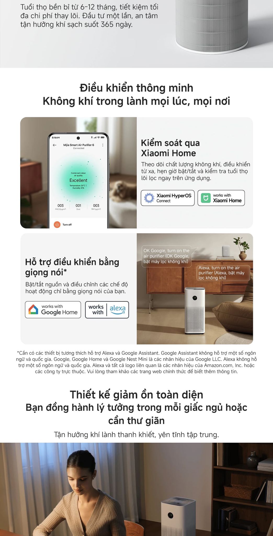 - Hỗ trợ điều khiển bằng giọng nói: Bật.Tắt và điều chỉnh chế độ bằng giọng nói.