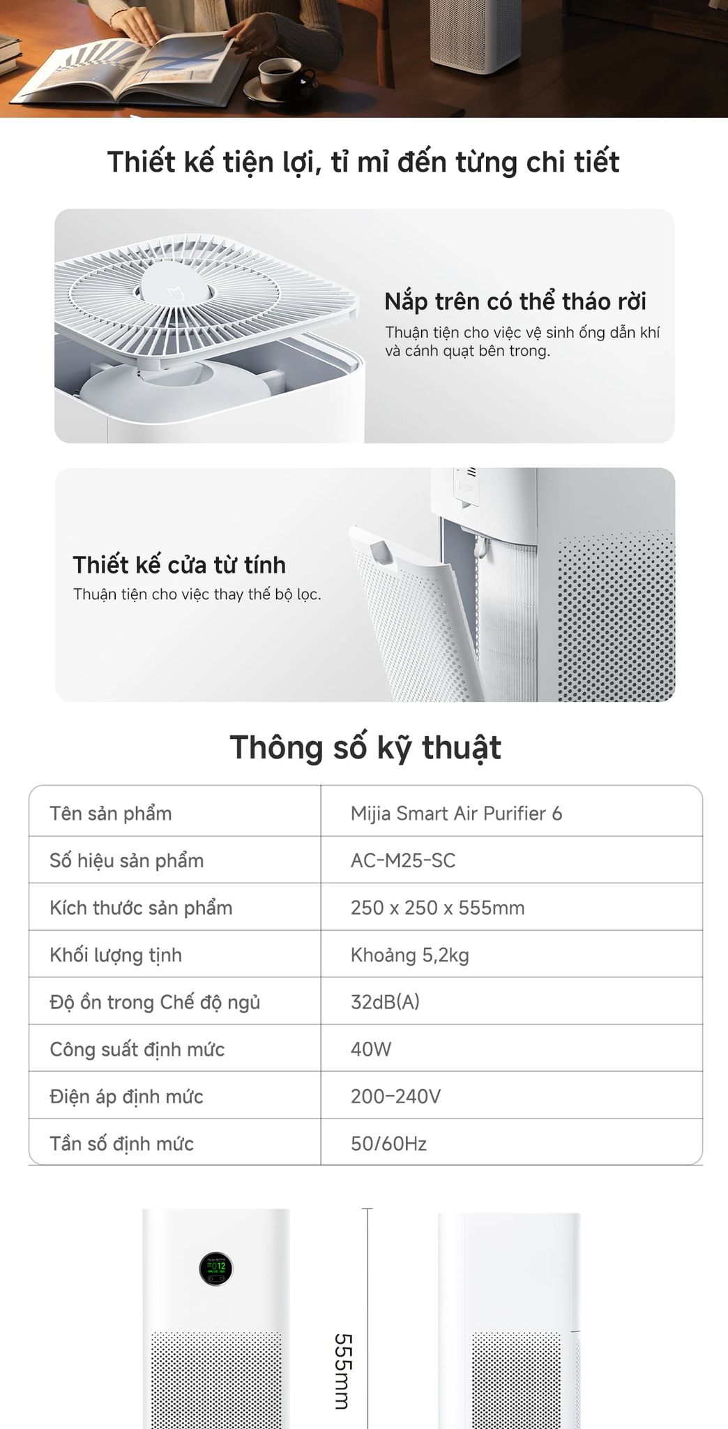 Mijia Smart Air Purifier 6 EU là máy lọc không khí thông minh, hiện đại và được tích hợp nhiều công nghệ tiên tiến nhằm mang lại không gian sống trong lành và dễ chịu cho cả gia đình. Đồng thời nâng tầm chất lượng sống, bảo vệ hệ hô hấp khỏi bụi bẩn, phấn hoa và các hạt gây ô nhiễm khác khó nhìn thấy bằng mắt thường.