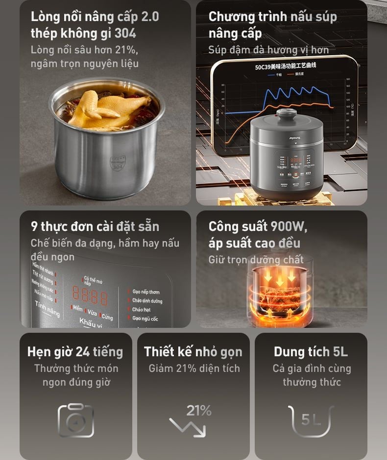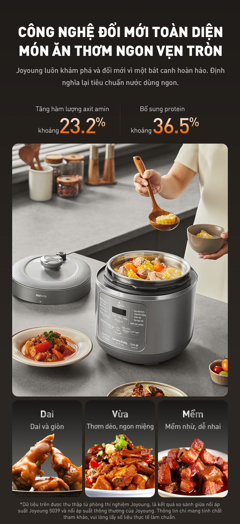 Joyoung nâng cấp chương trình nấu súp để giúp hầm nhừ mềm các món ăn, giữ trọn hương vị cũng như dinh dưỡng cho mỗi bữa ăn.