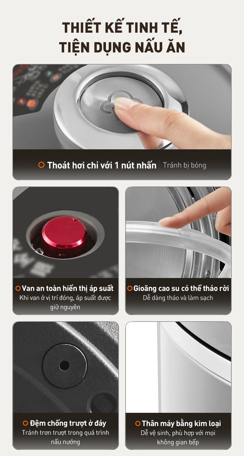 Công suất nồi áp suất lên đến 900W và áp suất cao đều giúp giữ trọn dinh dưỡng, nấu nhanh tiện lợi và tiết kiệm thời gian nấu nướng.