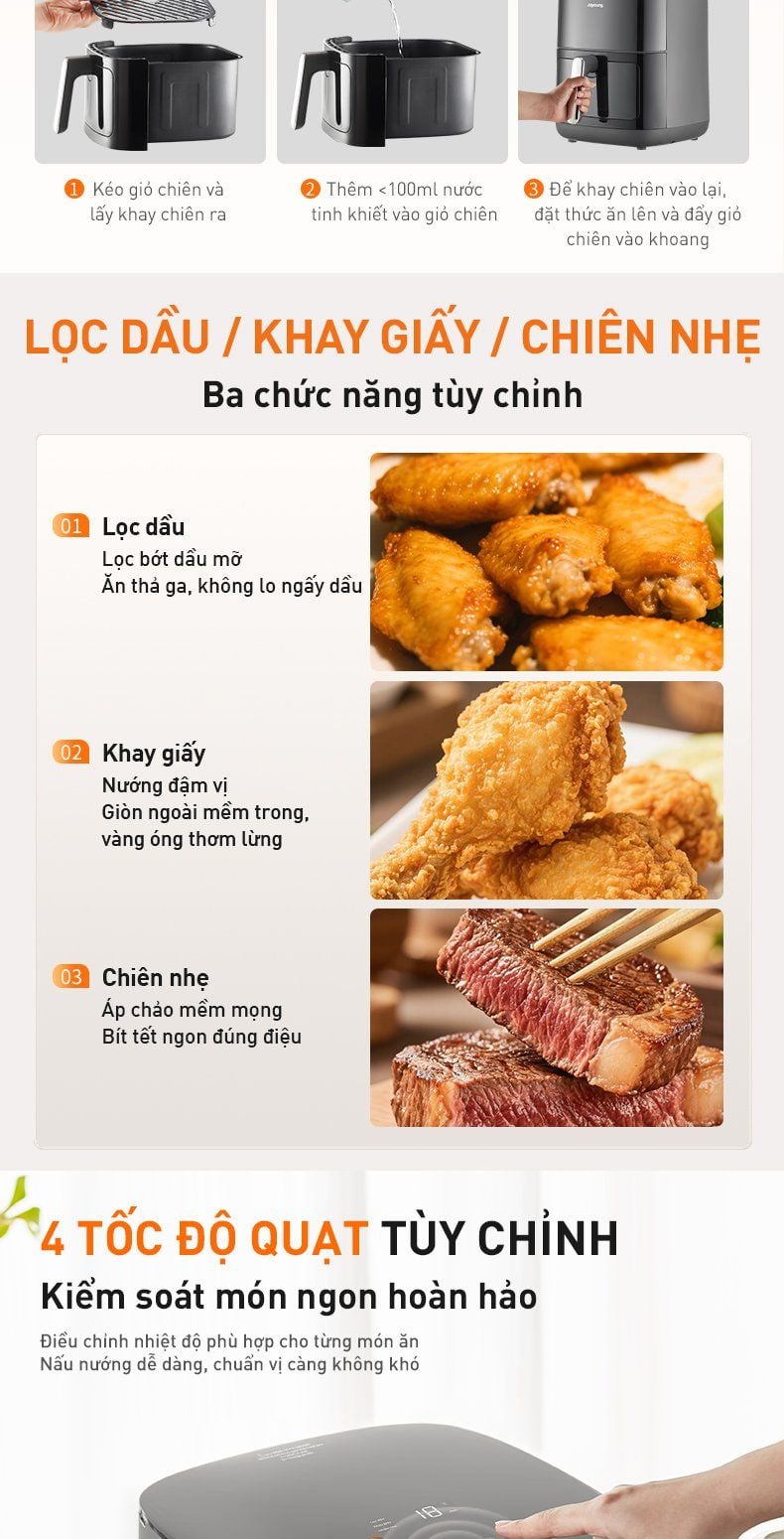 - Ba chức năng tùy chỉnh: Lọc dầu / Khay giấy / Chiên nhẹ.
