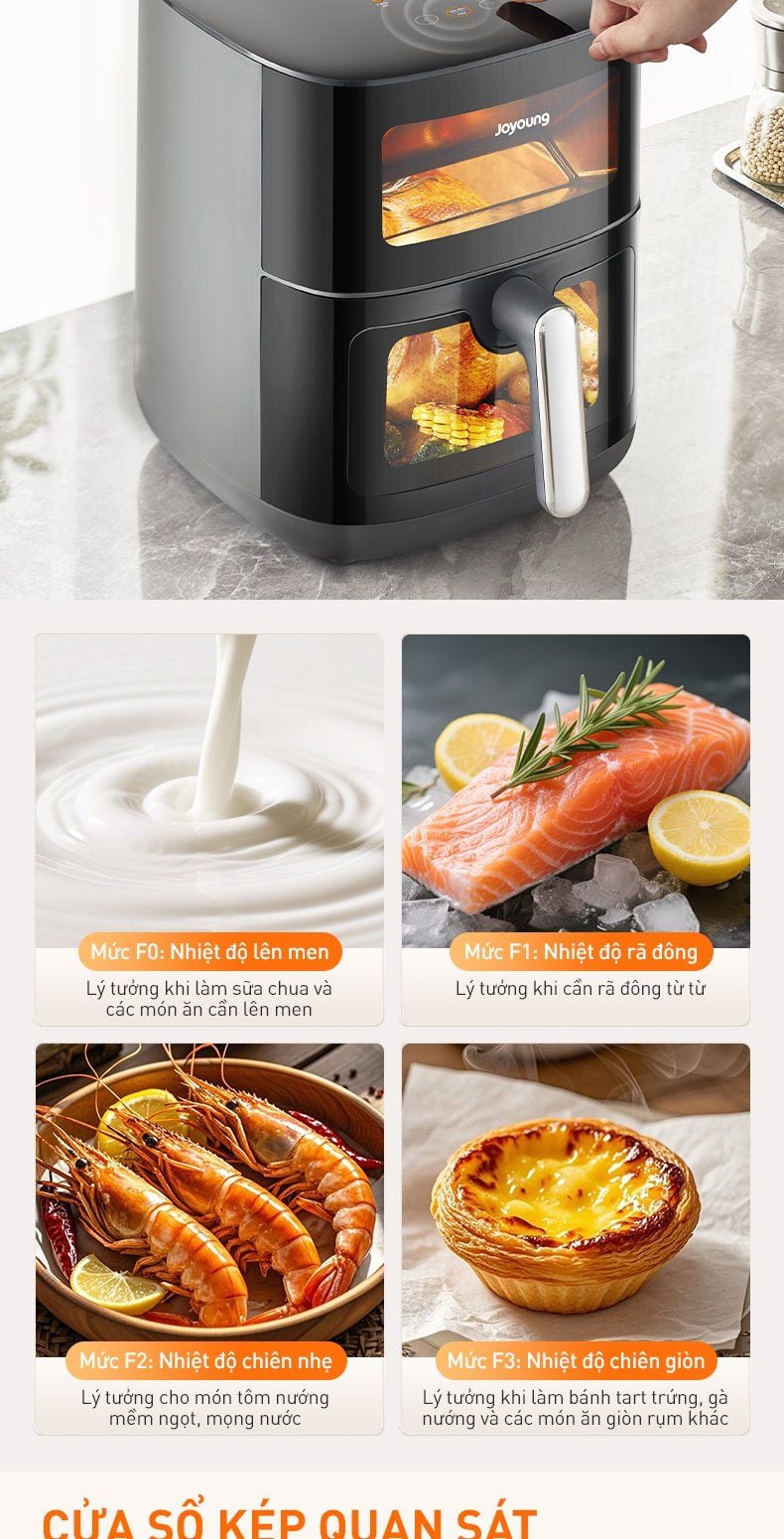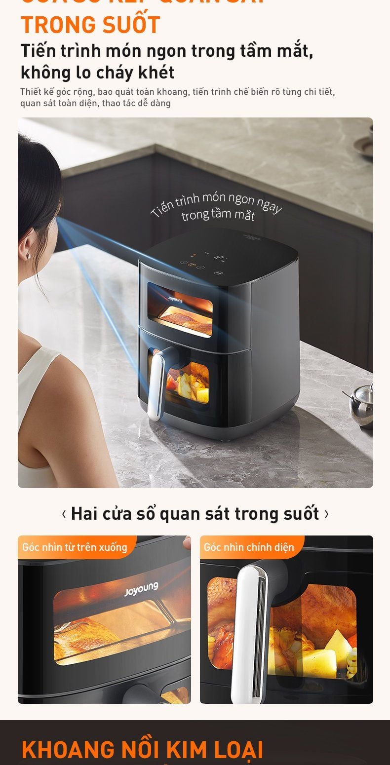 - Cửa sổ kép quan sát trong suốt: Tiến trình món ngon trong tầm mắt, quan sát xuyên suốt, không lo cháy khét thức ăn.