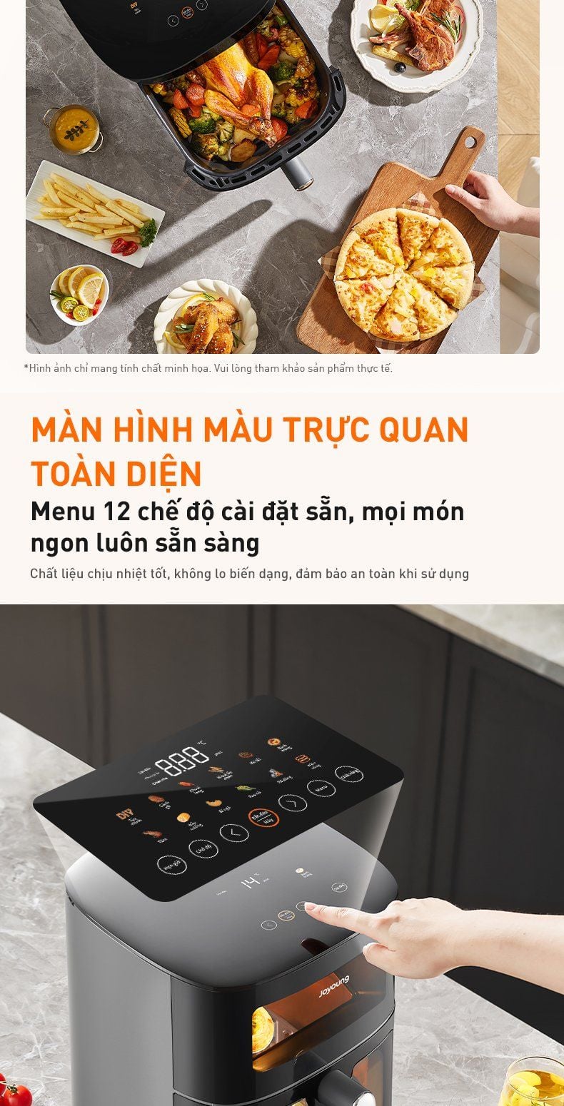 - Màn hình màu trực quan toàn diện: Menu 12 chế độ cài đặt sẵn, mọi món ngon luôn sẵn sàng.