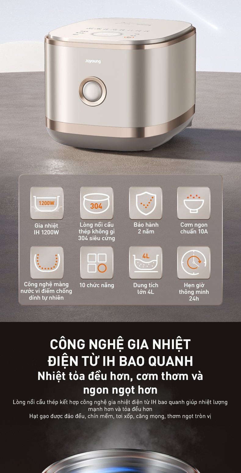 - Công nghệ gia nhiệt điện từ IH: Nhiệt lượng mạnh hơn và tỏa đều hơn.