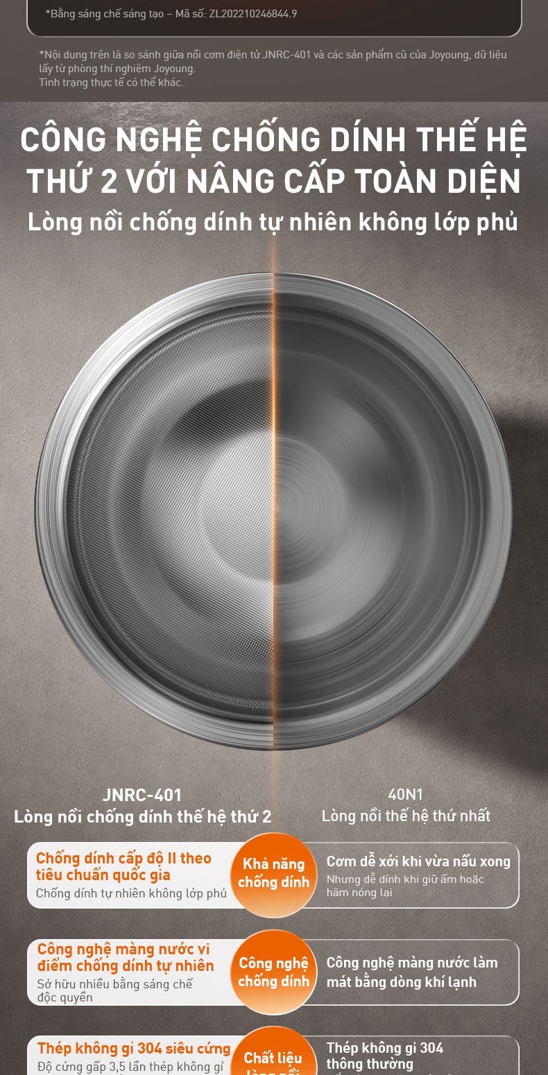 - Công nghệ chống dinh thế hệ thứ 2 với nâng cấp toàn diện: Chống dính tự nhiên, không lớp phủ hóa học.