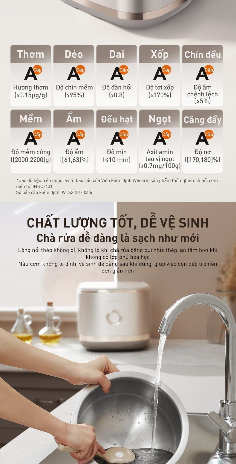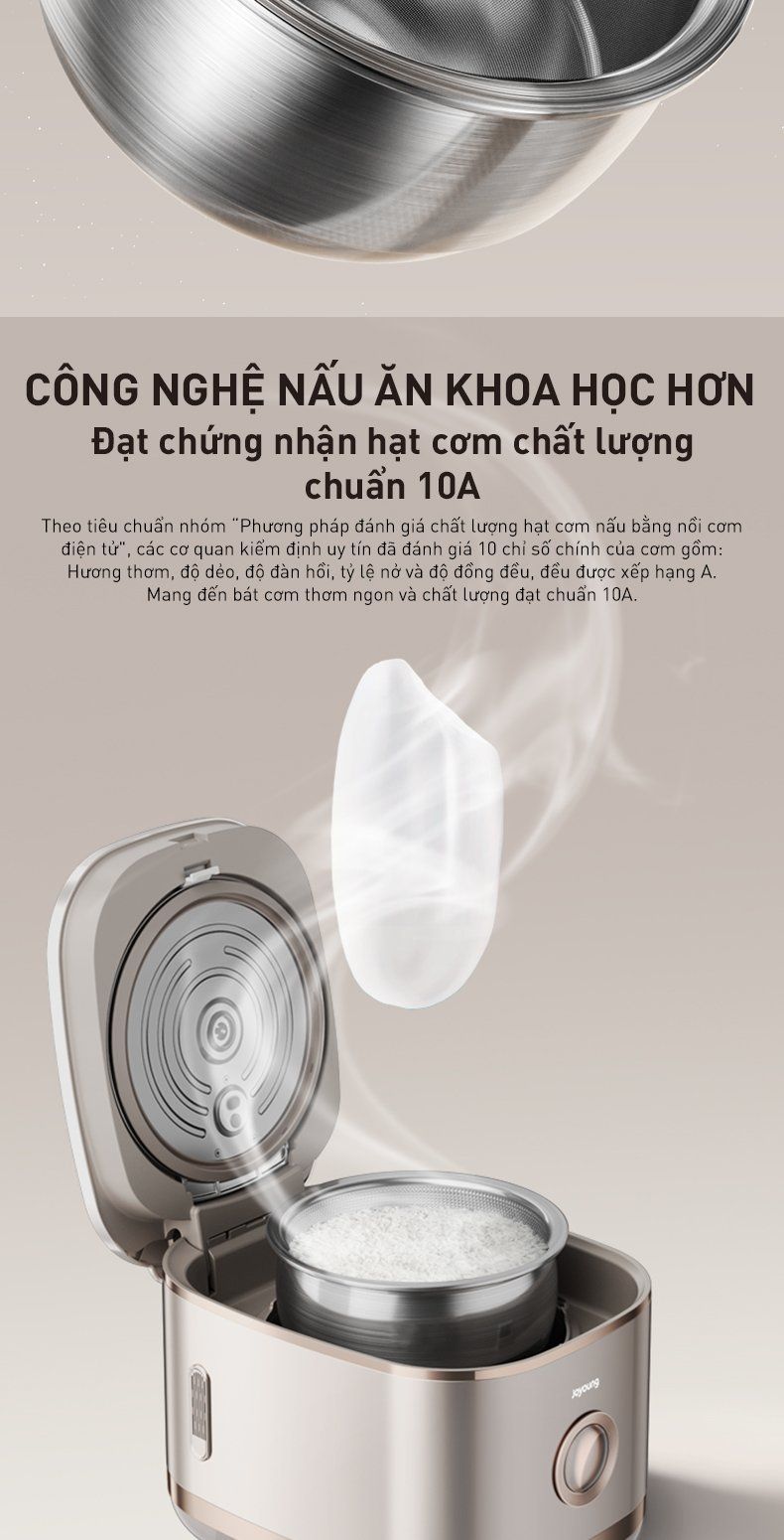 - Cơm ngon chuẩn 10A: Từ hương thơm đến độ độ dẻo, độ nở... đều xếp hạng A.