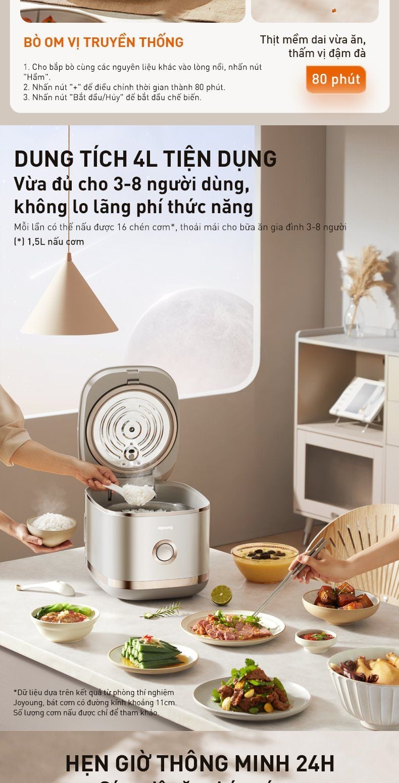 - Dung tích 4L tiện dụng: 1,5L nấu cơm, vừa đủ dùng cho 3-8 người.