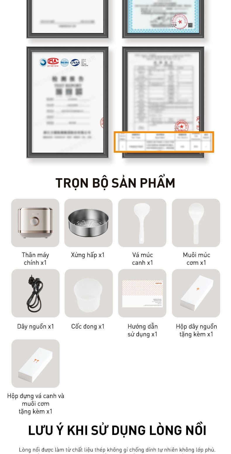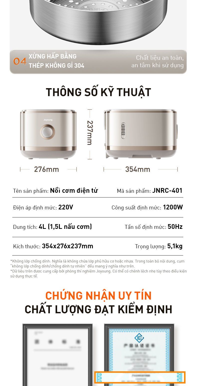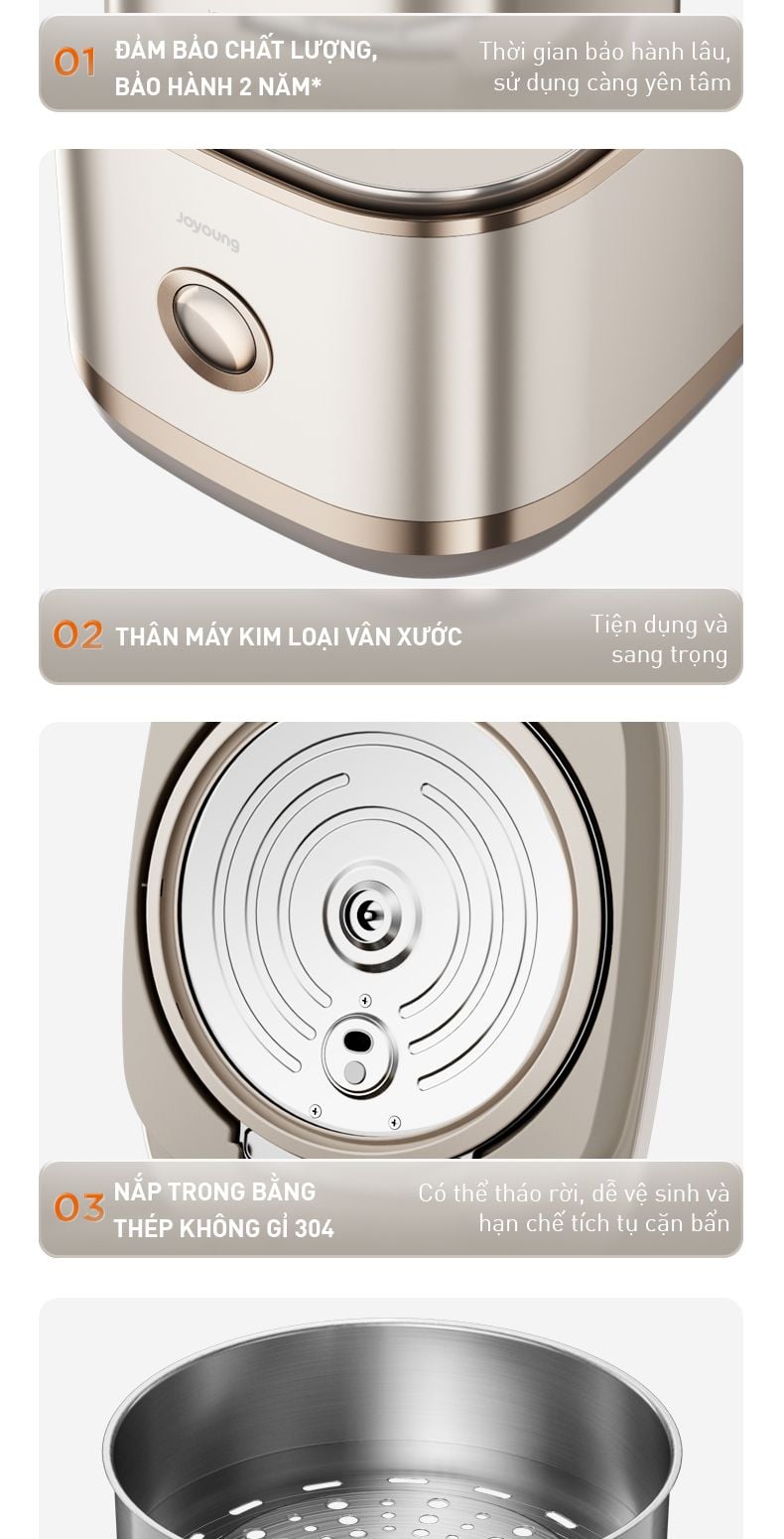 - Xửng hấp bằng thép không gỉ 304: Chất liệu an toàn, an tâm sử dụng.