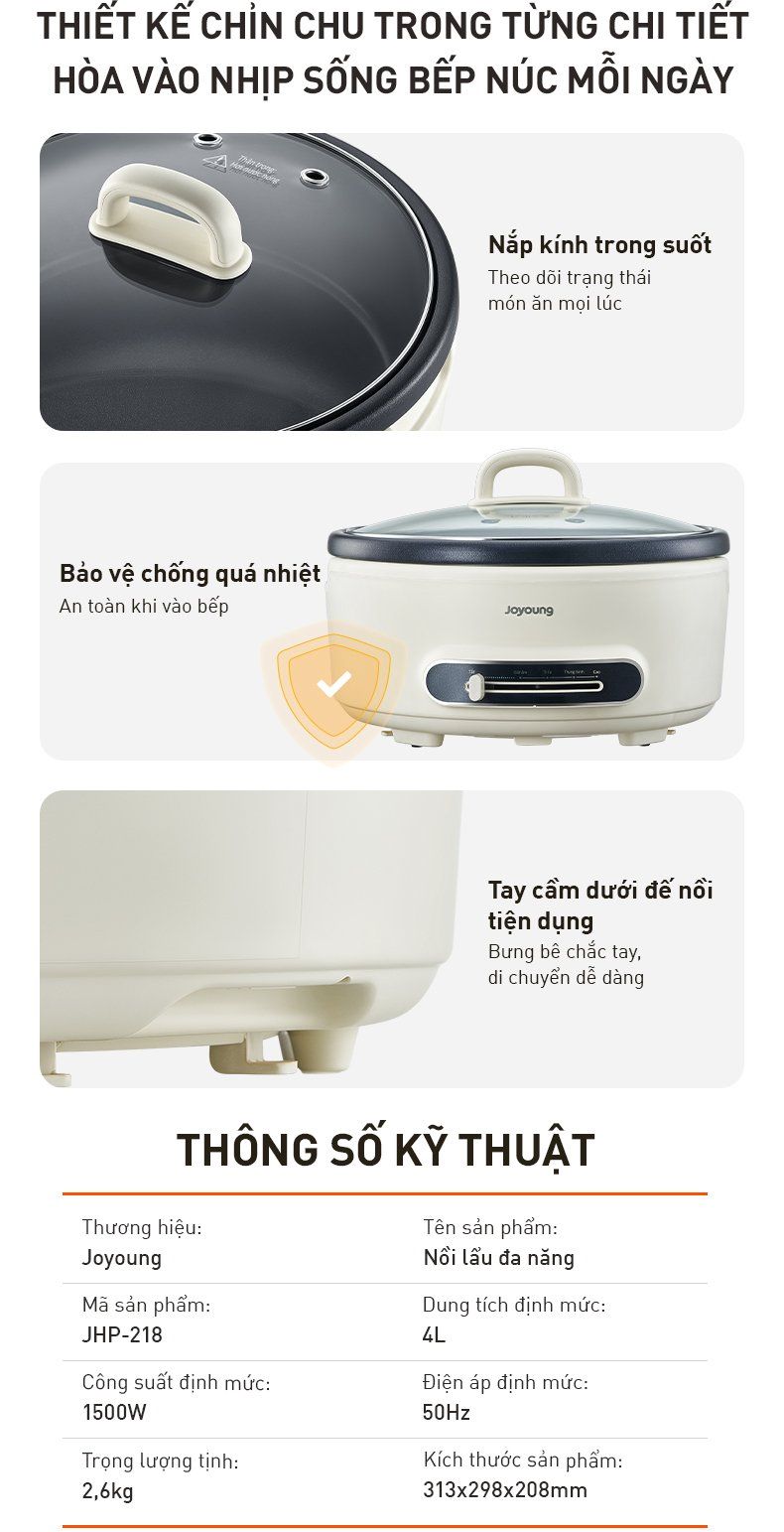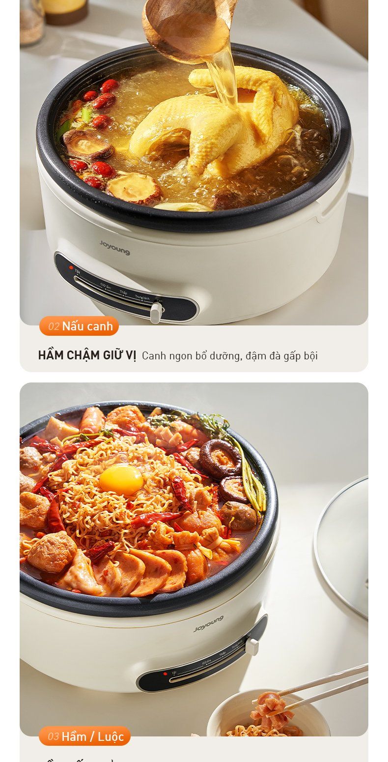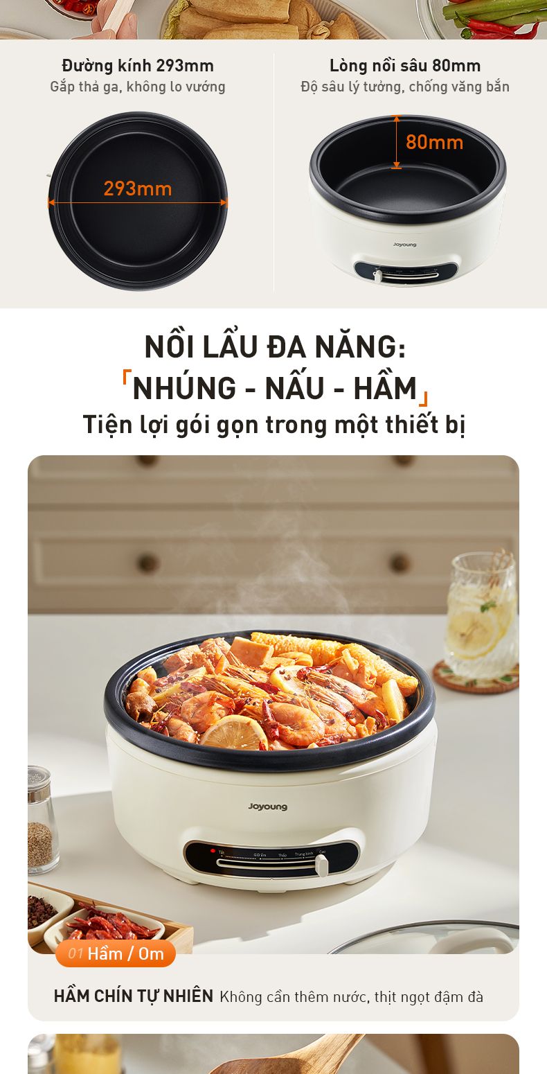 - Nồi lẩu đa năng: Nhúng - Nấu - Hầm: Tiện lợi gói gọn trong một thiết bị.