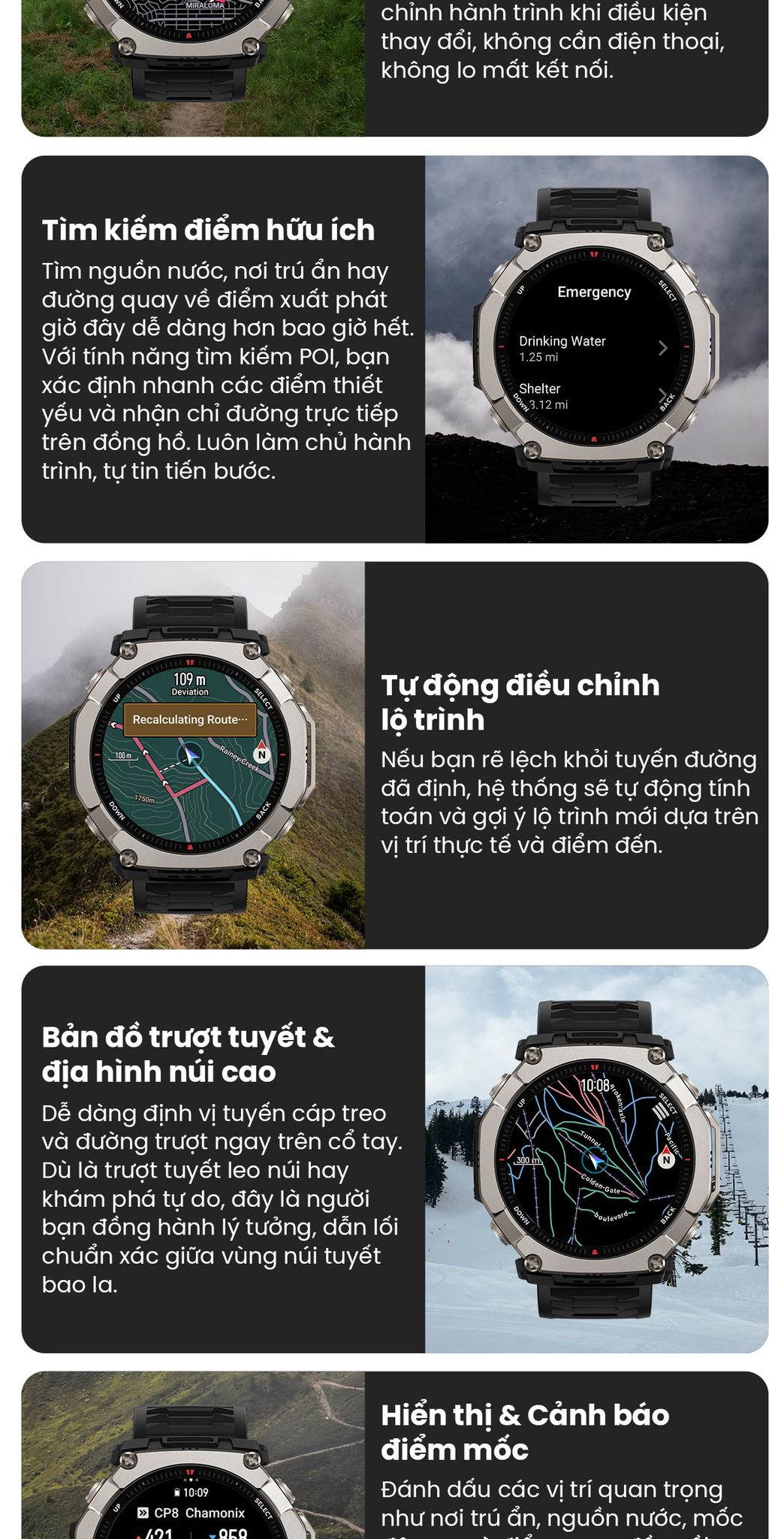 - Đồng hành cùng mọi thử thách ngoài trời: Theo dõi chính xác mọi hoạt động: trekking, leo núi, chạy trail… với bộ công cụ thám hiểm và tập luyện nâng cao.