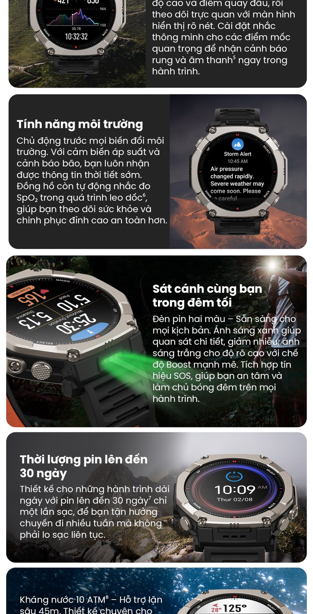 - Tự động nhắc đo SpO₂ trong quá trình leo dốc: Theo dõi sức khỏe sát sao, chinh phục đỉnh cao an toàn.