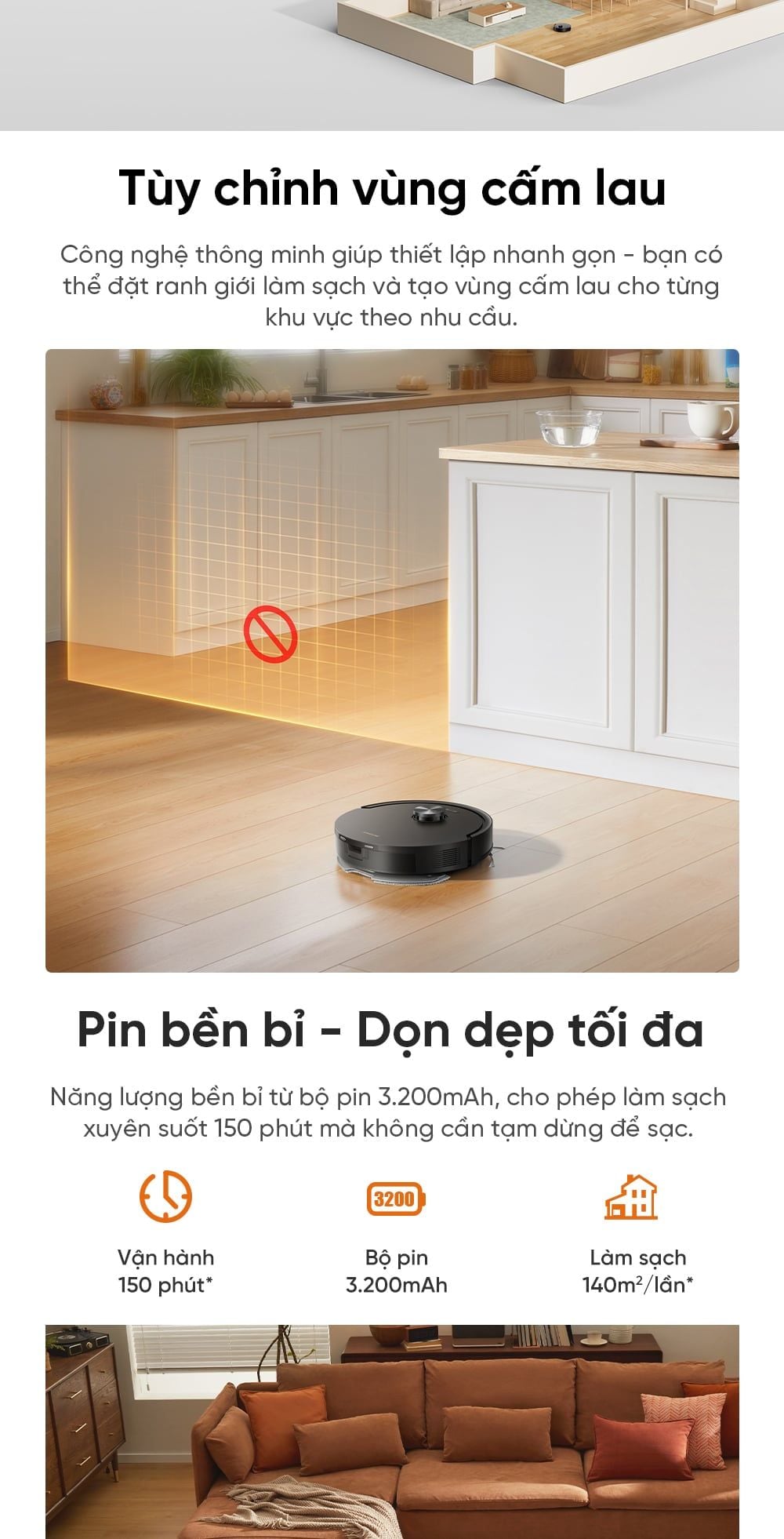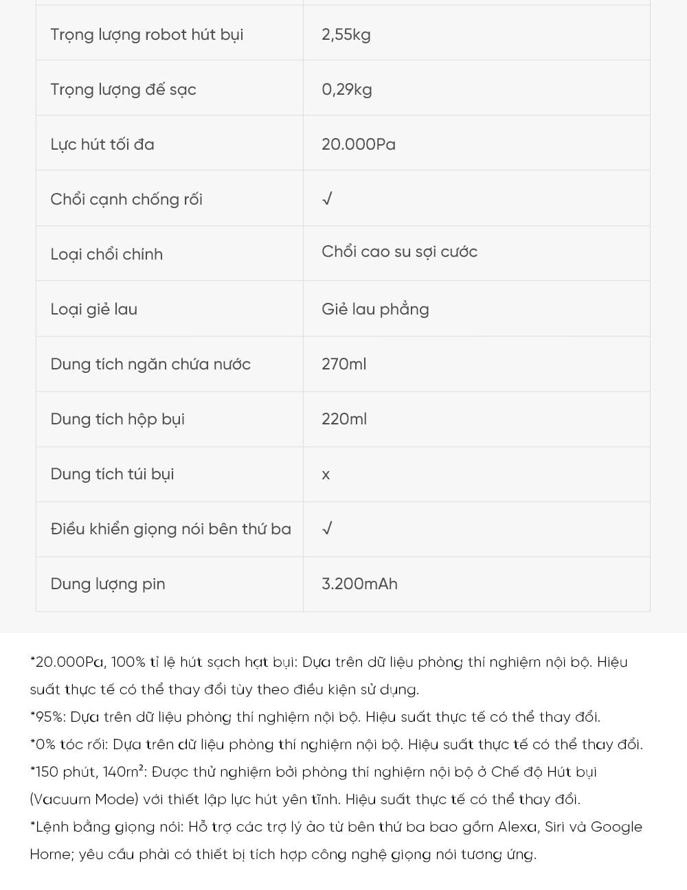 Trọng lượng robot hút bụi: 2,55kg