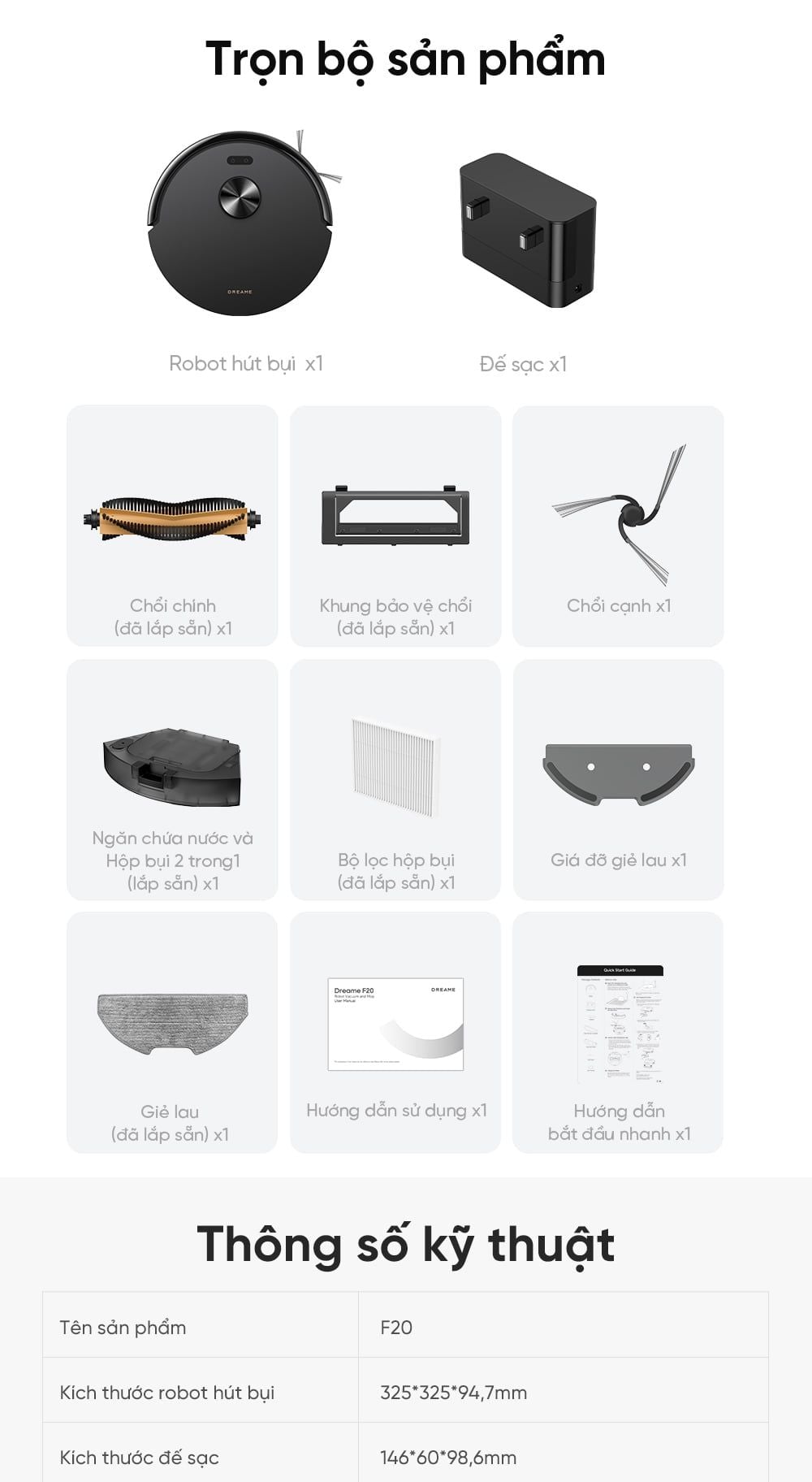 Tên sản phẩm: Robot hút bụi lau sàn chuyên dụng Dreame F20