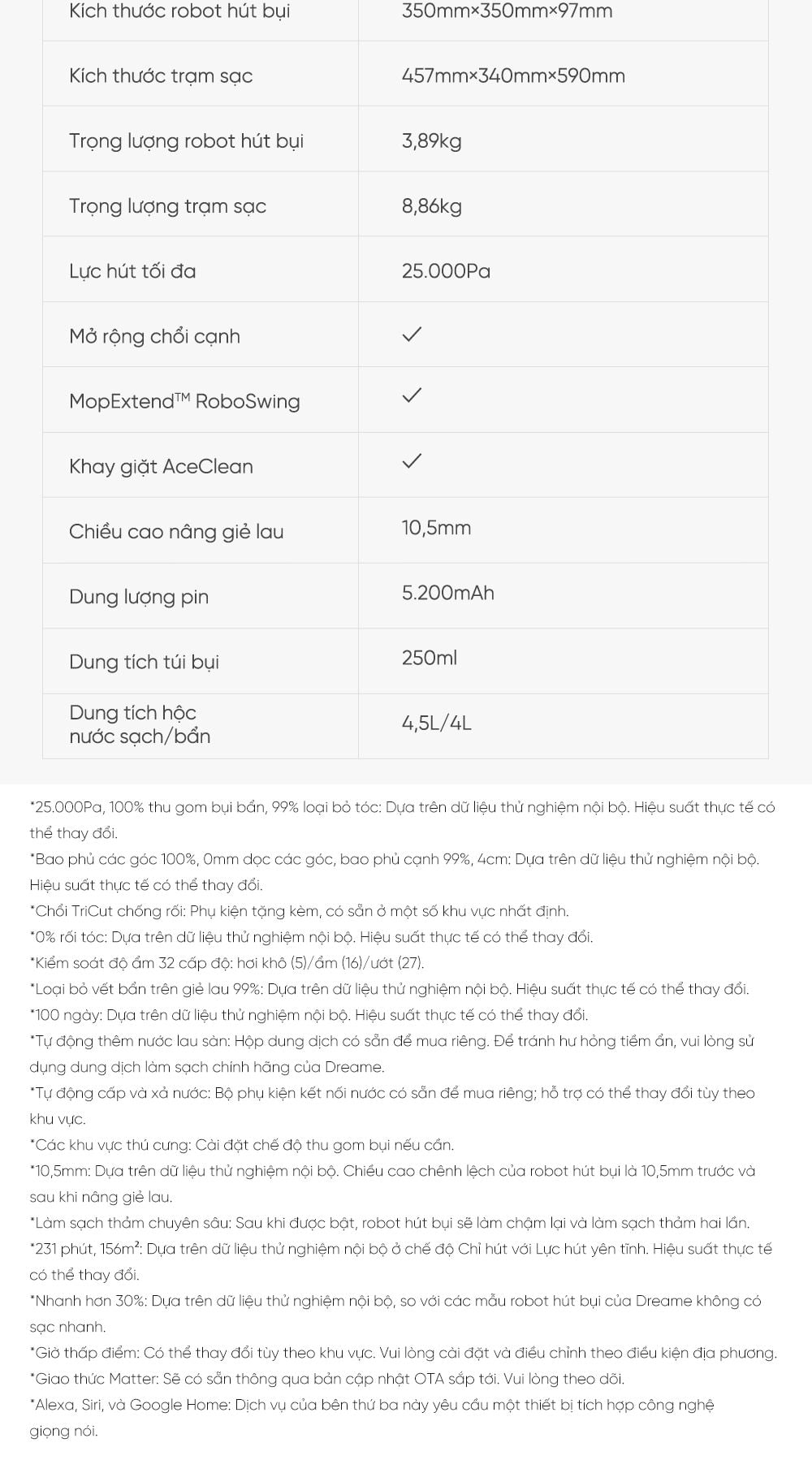 Kết nối nhà thông minh hoàn hảo: Nhờ hỗ trợ giao thức Matter, robot sẽ dễ dàng kết nối với ngôi nhà thông minh của bạn, mang đến trải nghiệm dọn dọn dẹp thông minh và tiện lợi tối đa.