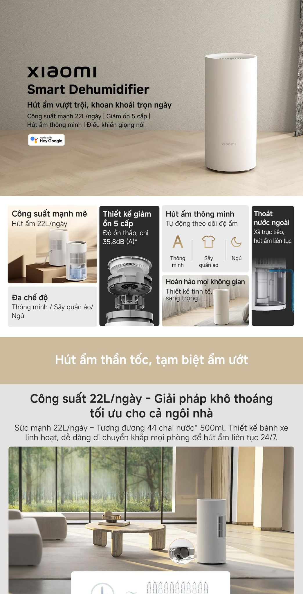 - Công suất 22L/ngày: Giải pháp khô thoáng tối ưu cho cả ngôi nhà.