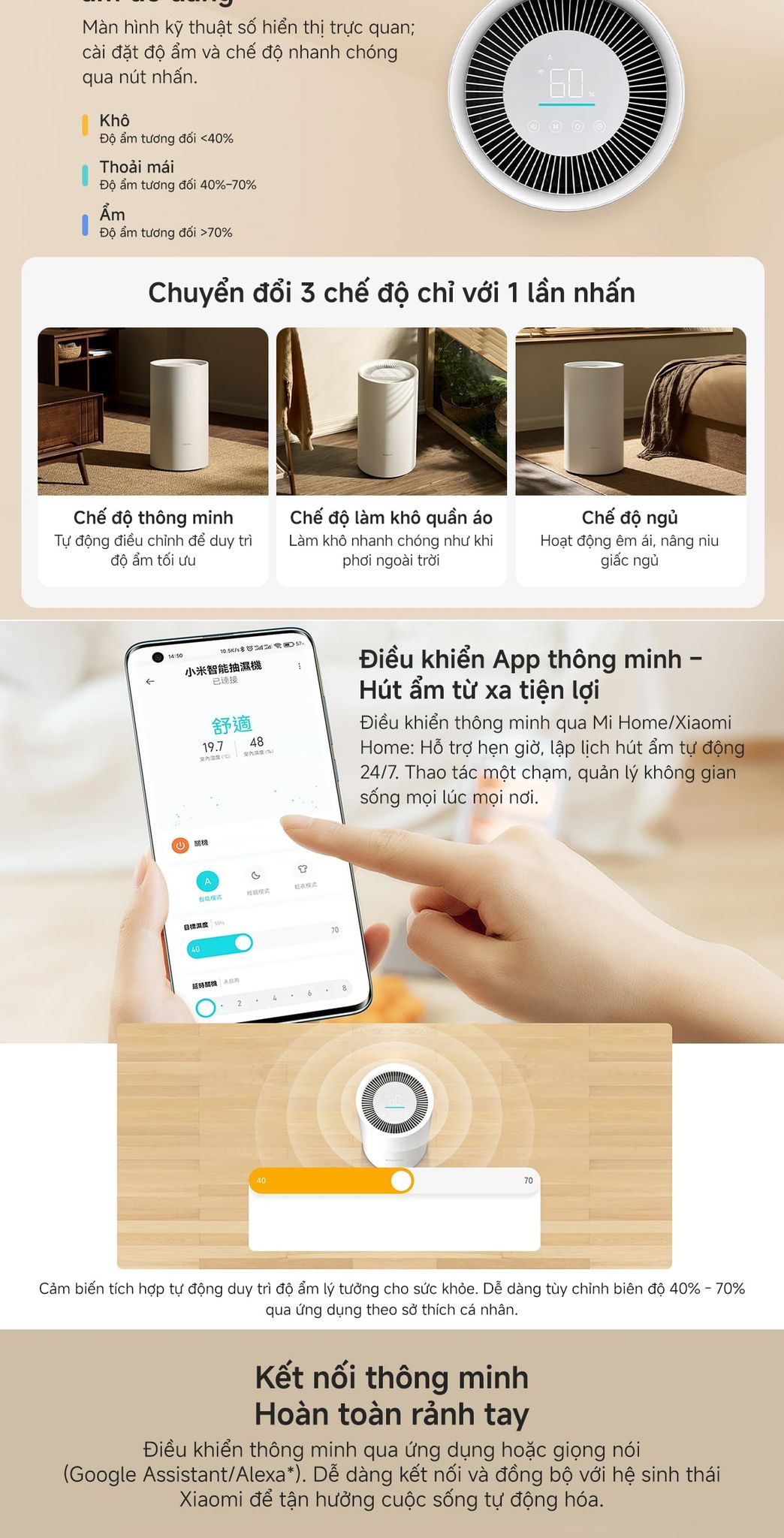 - Điều khiển App Mi Home/Xiaomi Home thông minh: Hút ẩm từ xa tiện lợi.