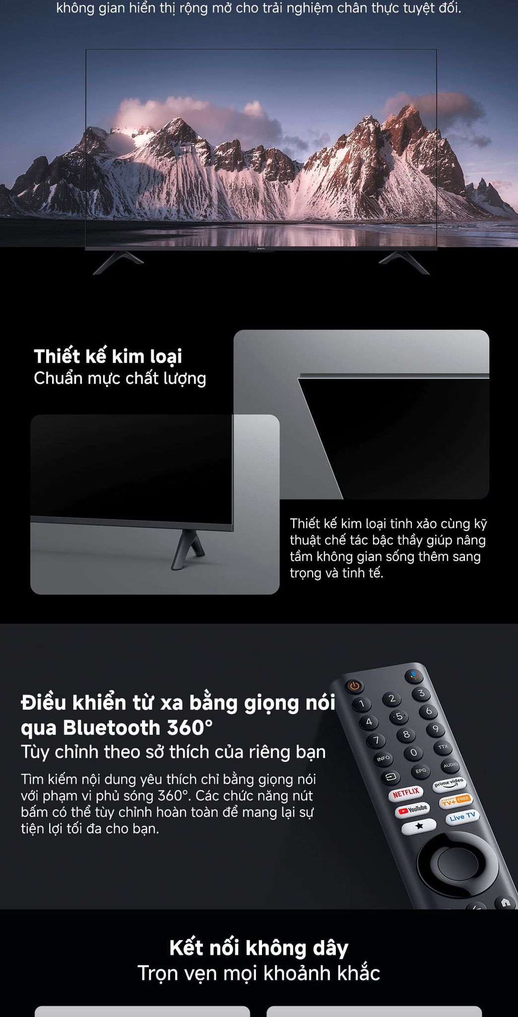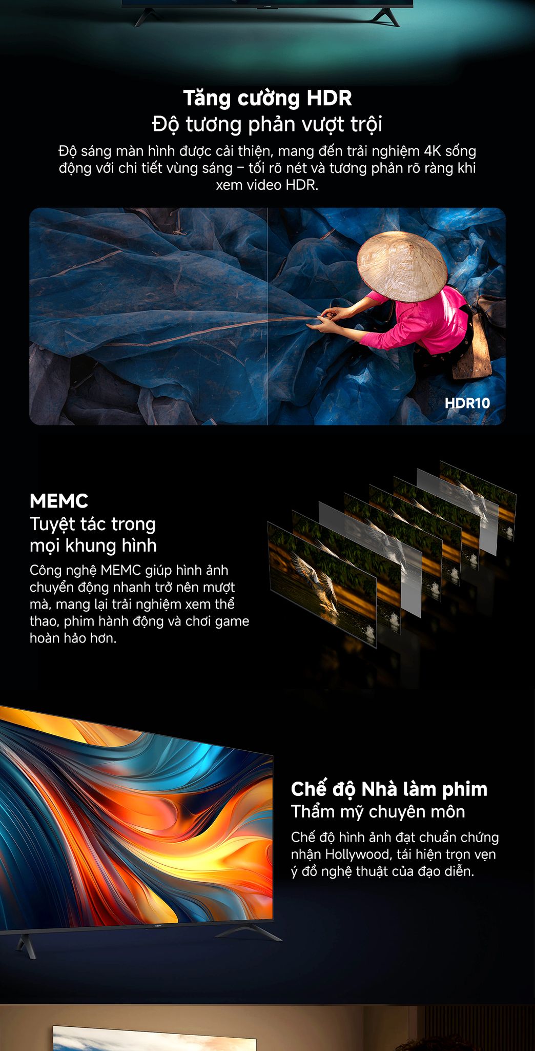 - Độ phân giải 4K UHD sắc nét vượt trội, tái hiện sống động từng chi tiết, cuốn hút tuyệt đối trong từng khung hình.
